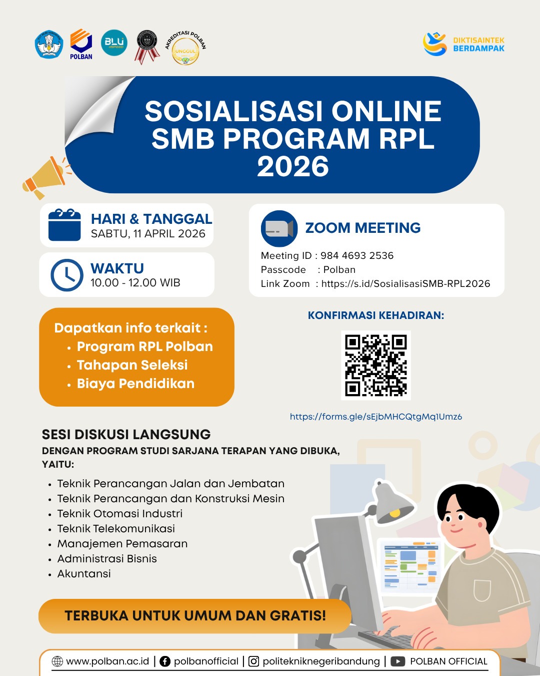11 April 2026 : Sosialisasi Online Pendaftaran Gelombang 1 Program RPL TA 2026/2027