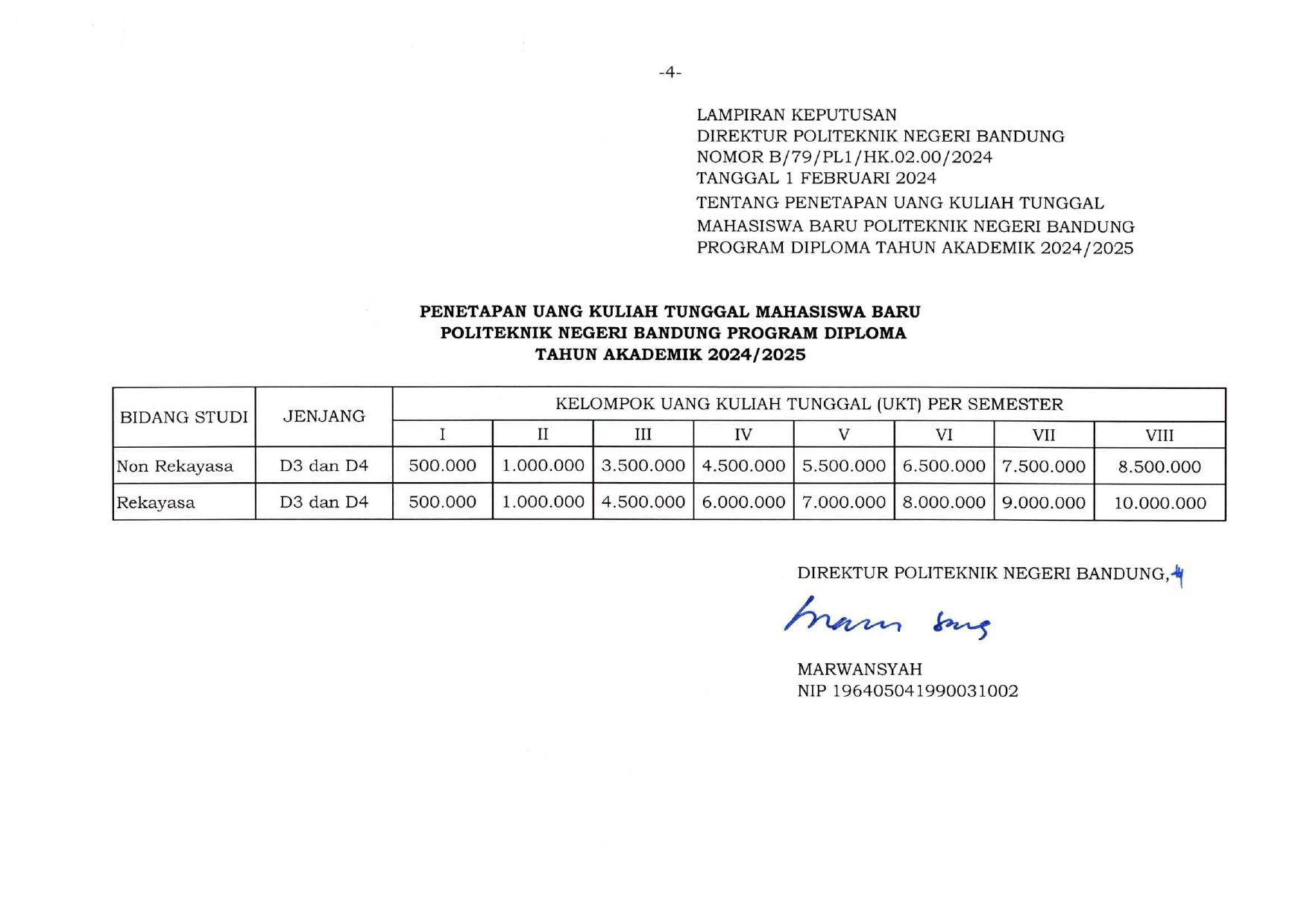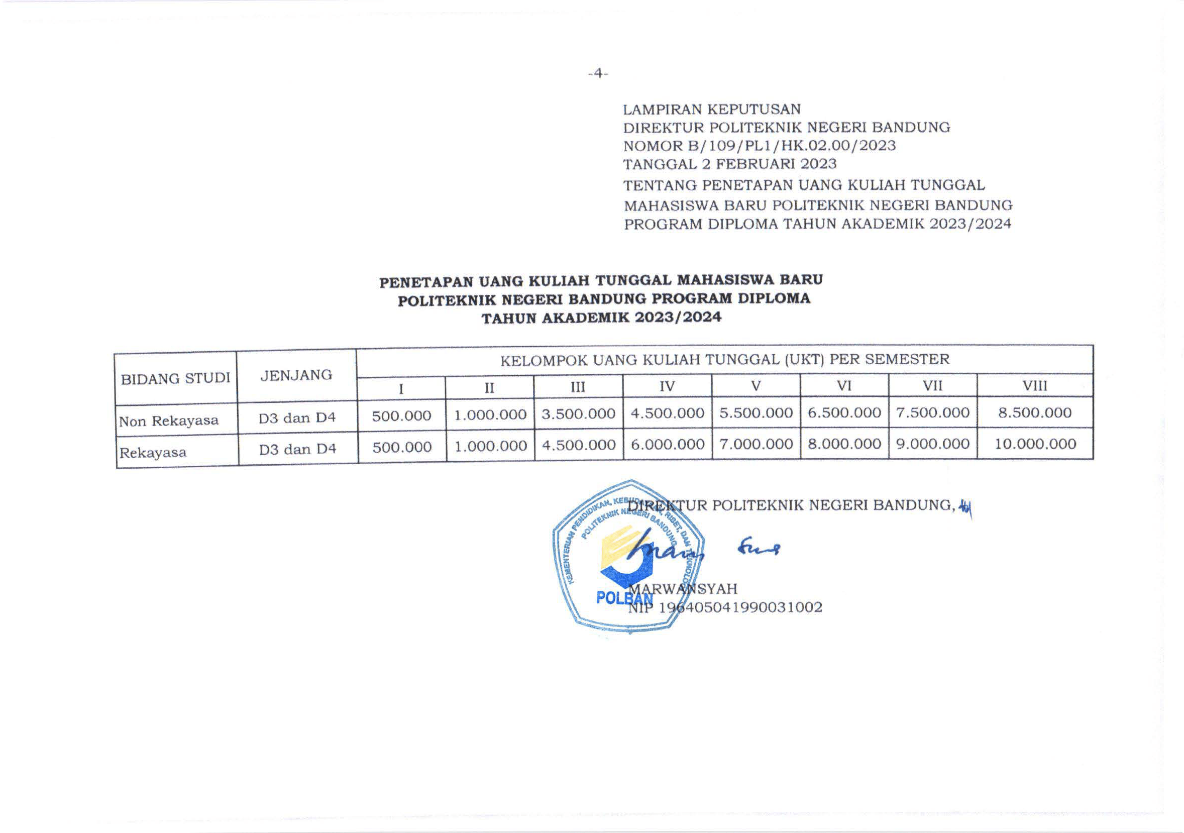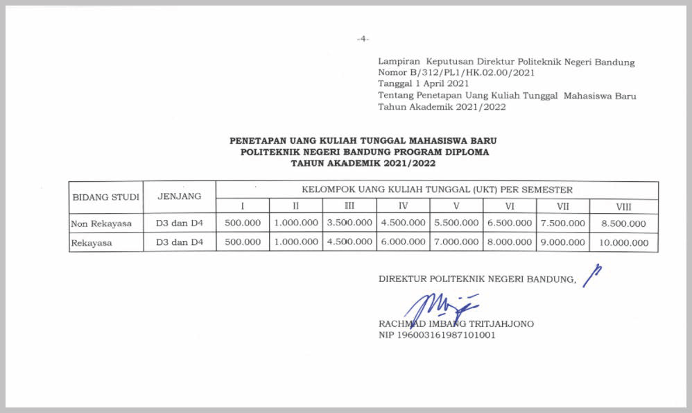 Berikut SK Direktur Politeknik Negeri Bandung untuk nominal biaya IPI.