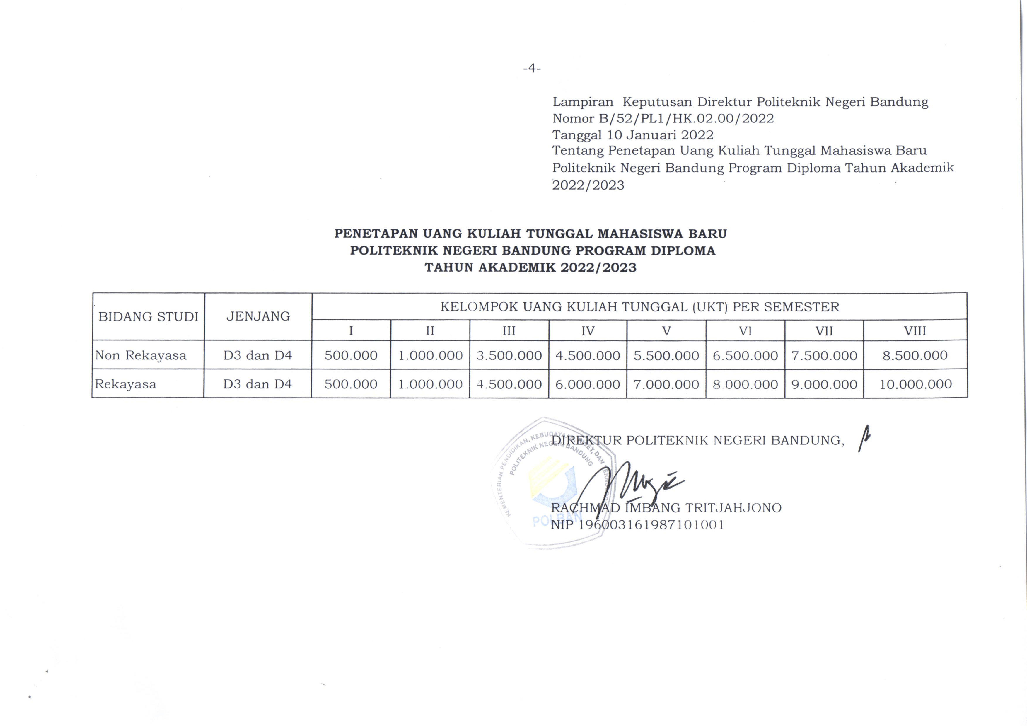 Berikut informasi Tabel UKT dan IPI di Politeknik Negeri Bandung.